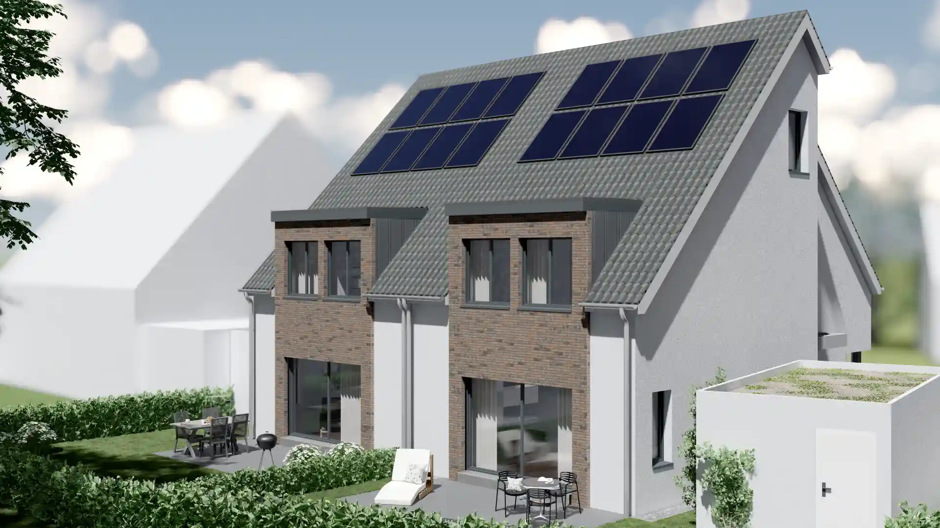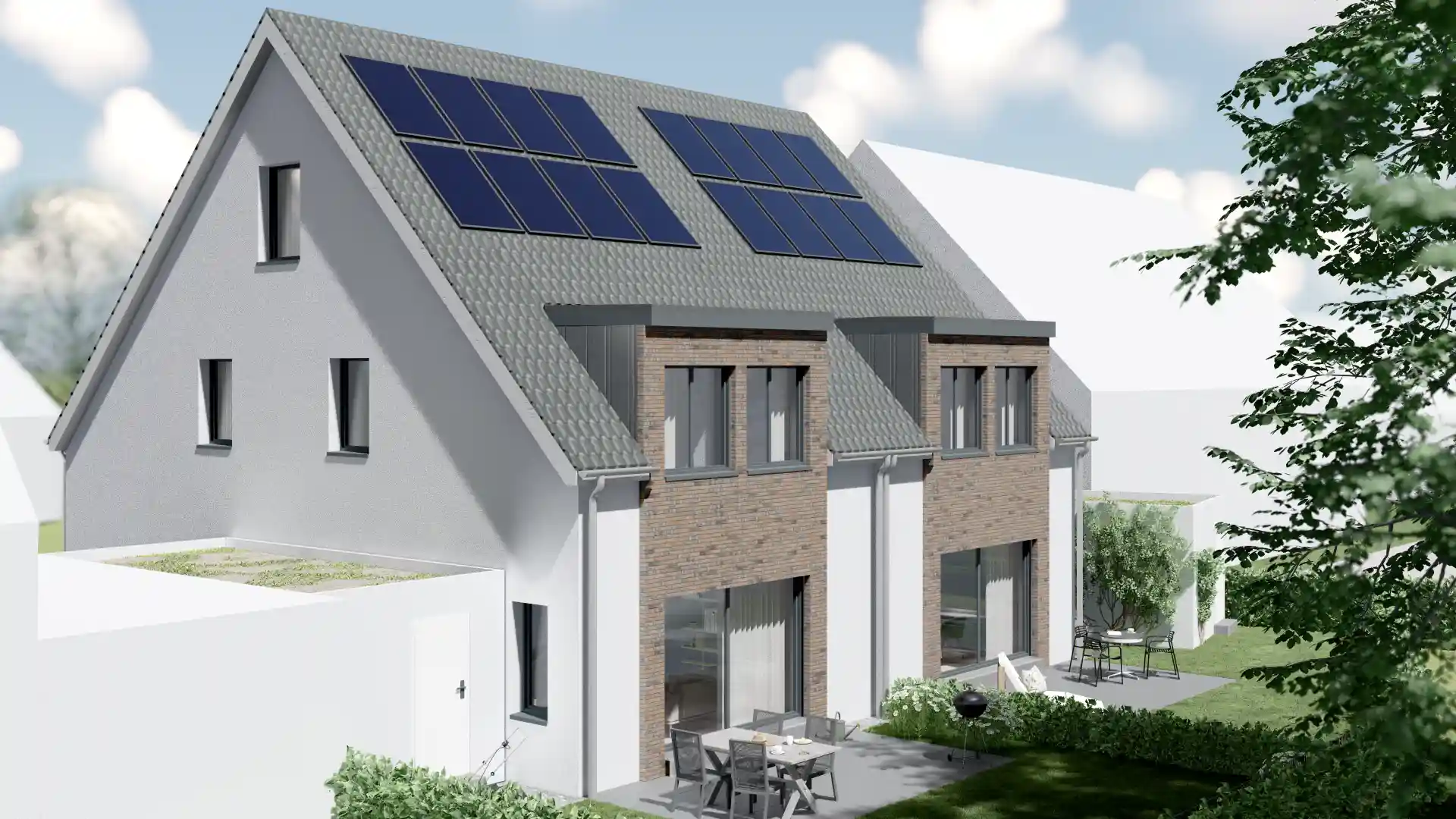 Moderne Doppelhaushälften mit 123 m² und 136 m² Wohnfläche, energieeffizient, in guter Lage von Neuss-Hoisten – hochwertig gebaut, mit eigenem Garten und viel Raum für Familien.